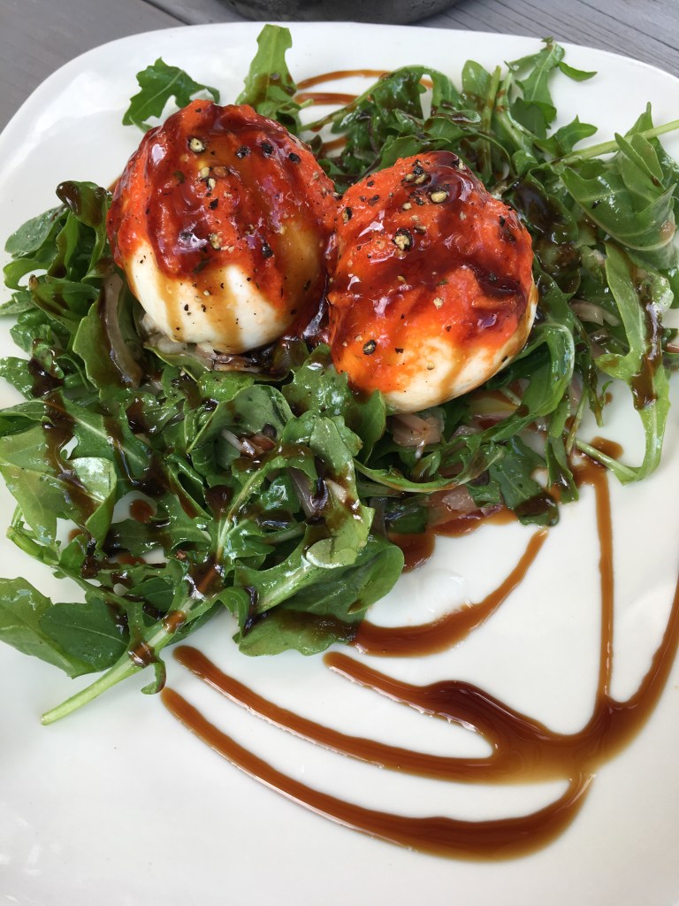 Our next stop was the Jamesport Vineyard. We went here mostly for the food and the estate Riesling orange. They have a wood burning pizza oven and the handmade pizza looks like it would be amazing. However, we did not get pizza. We ordered warm olives and the Burrata over salad greens. The olives were very good and the Burrata was yummy! It went with the wine perfectly.