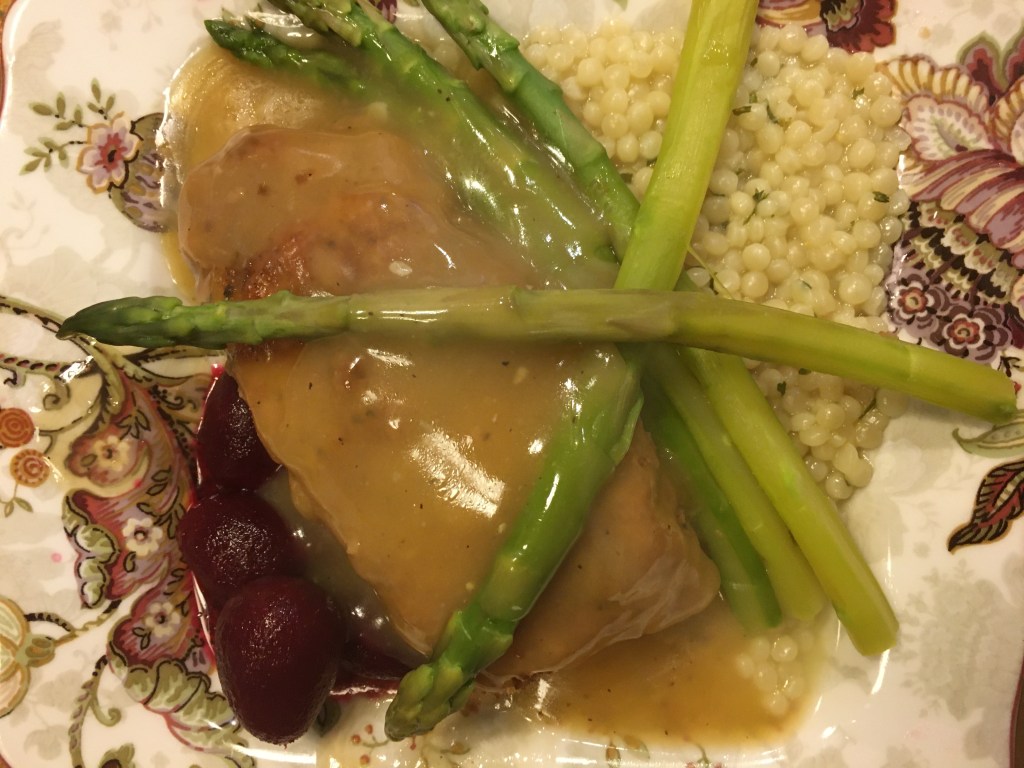 Welcome to Friday. I cooked last night. Feeling guilty about having been cooking the same thing over and over, I went with something new. I made Chicken Cordon Bleu. Is it American? Probably not, but I bet it’s popular in America to eat, unlike Escargot. So, I am including it in the list of recipes I’m posting here. Included on the plate above is Couscous, also not very American but yummy, and Asparagus. The pickled beets I did not pickle myself. Although, I may have been pickled myself with beer while cooking all this.