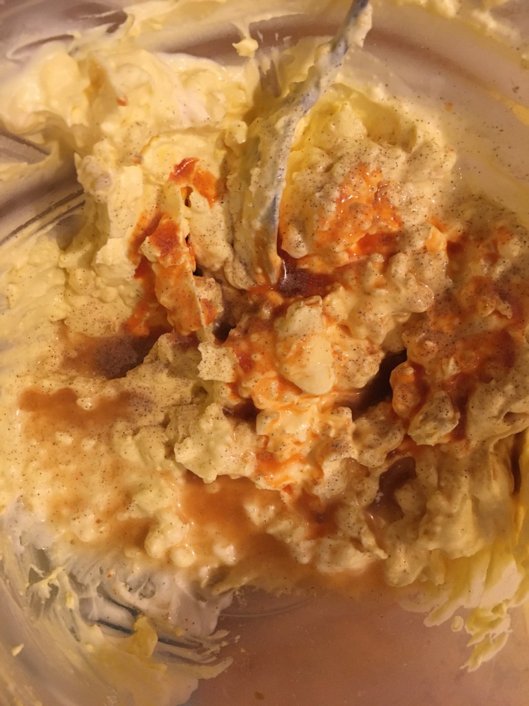 With a wooden spoon, stir the flour into the mirepoix a little bit at a time, until it is fully incorporated and forms a thick paste (this is your roux). Lower the heat and cook the roux for another five minutes or so, until it just starts to take on a very light brown color. Don’t let it burn, though!