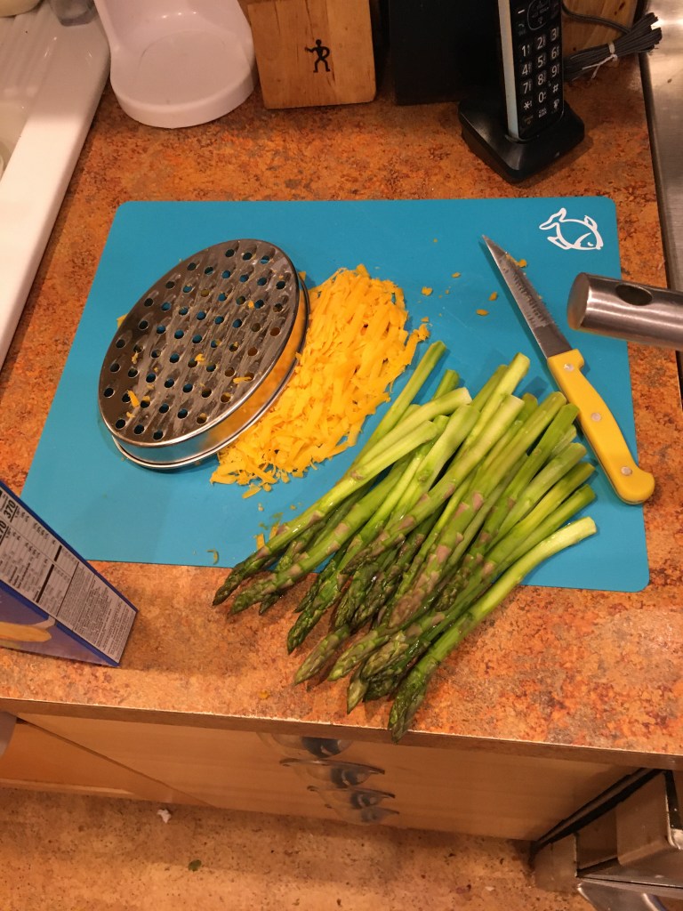I seasoned the chicken with some Adobo on one side. I flipped the breasts over and put some Viva Italian salad dressing on the other. I went outside and lit the barbeque thus heating it up. I came back in and started to cook the frozen seasoned curly fries in the air fryer. “EXTRA CRISPY curly fries” (Hallmark Christmas Movie Reference).