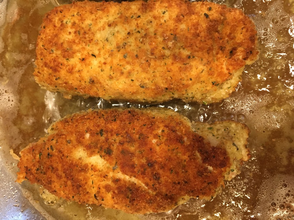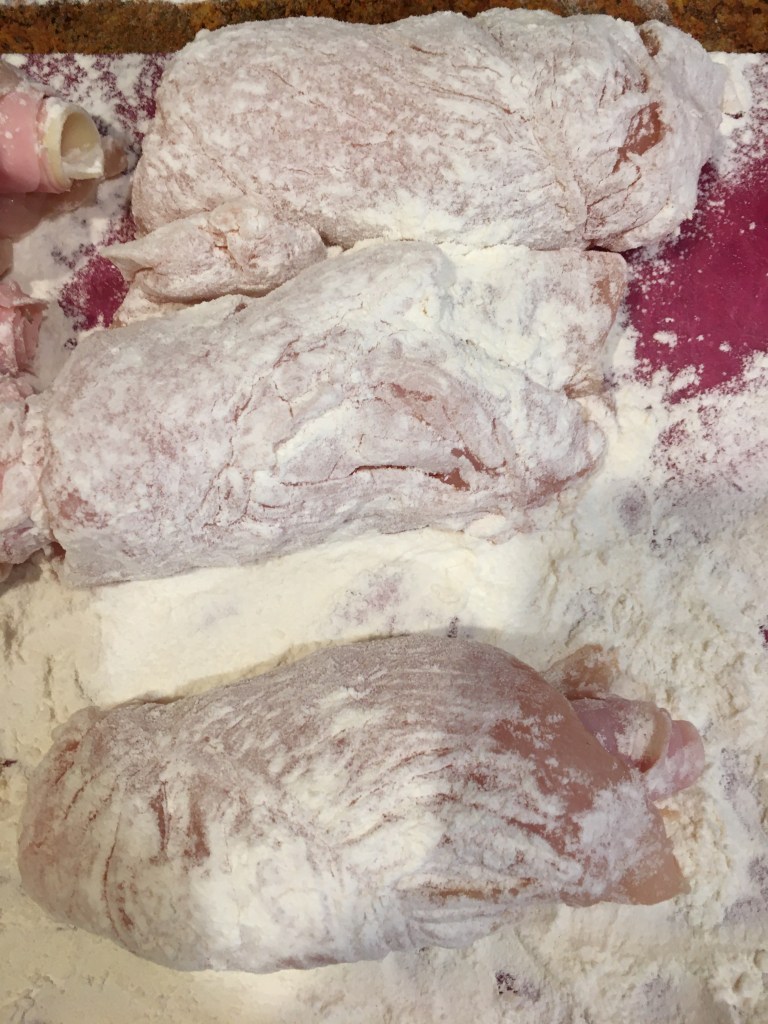 Trim and slice the chicken breast in half so they will cook evenly. I cut them length wise. I added them to the marinade in the zip top bag. Then into the fridge to marinate for 5 hours (over night work have been better) .